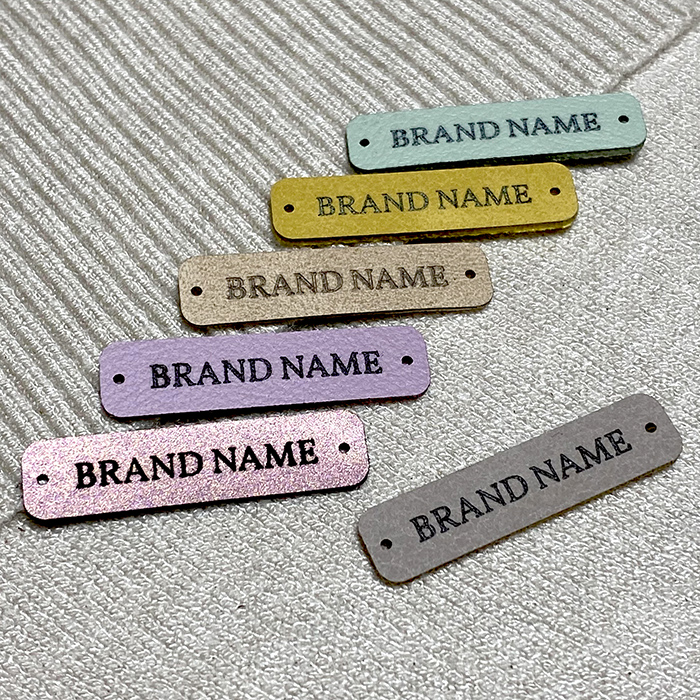 Etiqueta personalizada Modelo EP-M126 fabricada en piel sintética para ropa, bolsos, zapatos y diversos complementos de vestir.