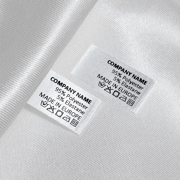 Etiqueta de composición personalizada de pequeñas dimensiones para coser en diversas prendas de vestir, realizada por encargo en raso. Este modelo de etiqueta textil se fabrica utilizando las tecnologías más avanzadas en el campo de la impresión digital en medios textiles. Las etiquetas están impresas en satén especial, por el método de transferencia térmica, con una calidad de impresión impresionante y alta resistencia al lavado.