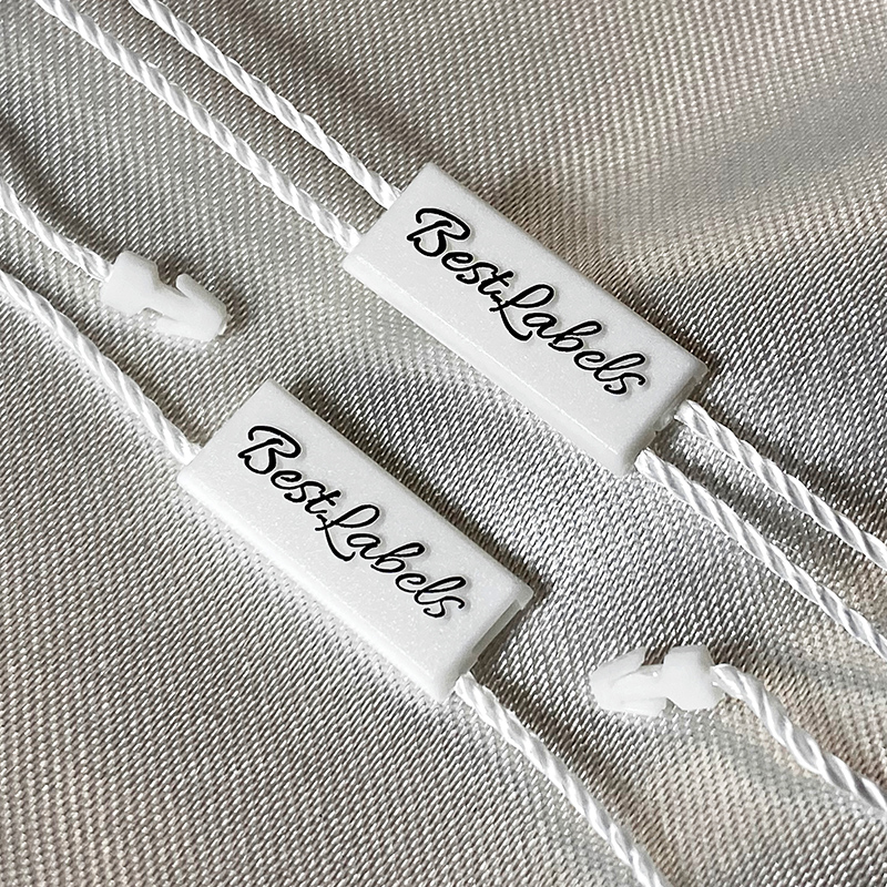 Sello personalizado de etiquetas de plástico ST-M124 para los productos fashion, como ropa, calzado, bolsos, joyas, accesorios, etc.