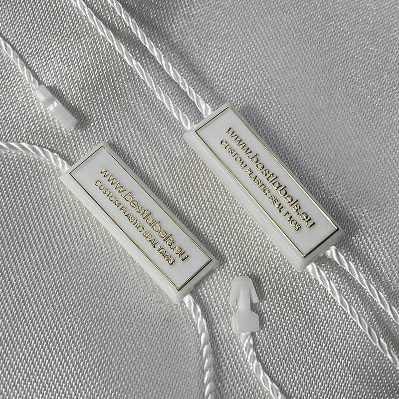 Sello personalizado de etiquetas de plástico ST-M148 para los productos fashion, como ropa, calzado, bolsos, joyas, accesorios, etc.