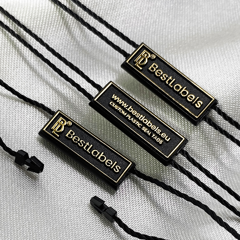 Sello personalizado de etiquetas de plástico ST-M150 para los productos fashion, como ropa, calzado, bolsos, joyas, accesorios, etc.