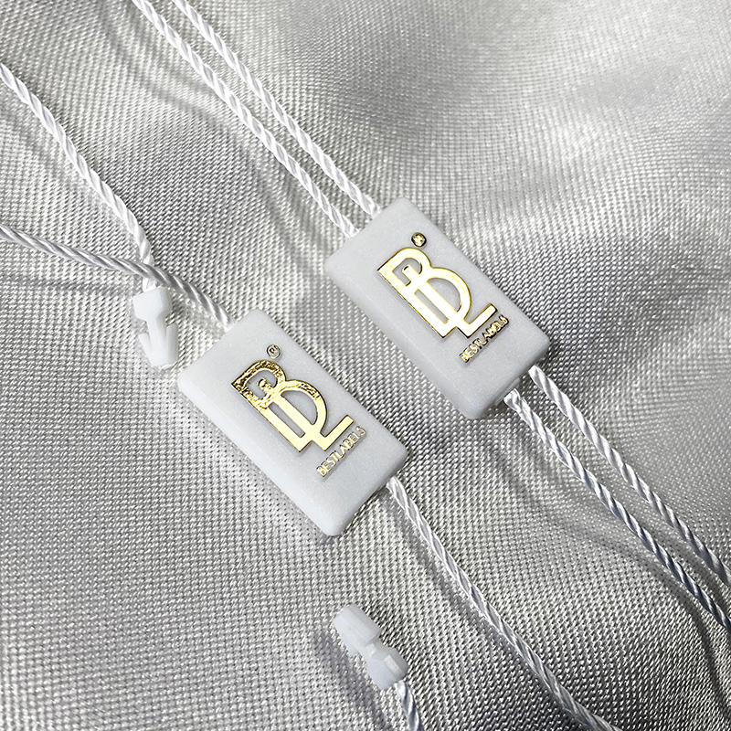 Sello personalizado de etiquetas de plástico ST-M182 para los productos fashion, como ropa, calzado, bolsos, joyas, accesorios, etc.