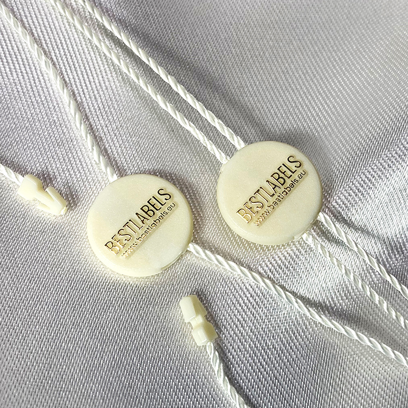 • Materiales: plástico (sello) y poliéster (cordón).
